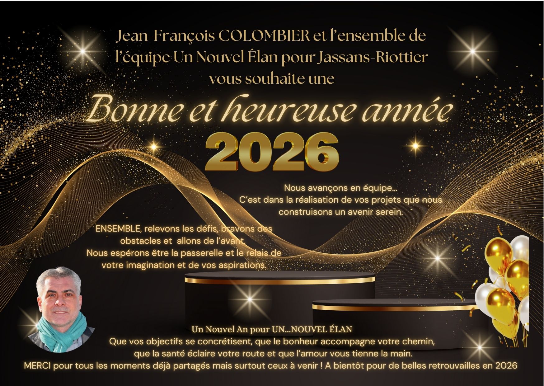 À l’occasion de la nouvelle année, Jean-François Colombier adresse ses vœux les plus sincères aux habitantes et aux habitants de Jassans-Riottier.